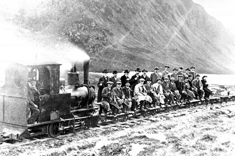 Aluminium Corporation Ltd. management and Conwy and Colwyn Bay Joint Water Supply Board officials about to leave Llyn Cowlyd by train, Sept. 1917.